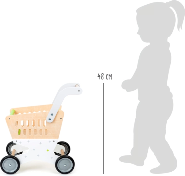Geef kinderen een authentieke winkelervaring. De houten kinderwinkelwagen SMALL FOOT Trend combineert een elegant design, stabiliteit en veilig gebruik dankzij rubberen wielen, die zorgen voor een stille en verfijnde rit op verschillende ondergronden. De ruime mand biedt gemakkelijk plaats aan speelgoed, knuffels en accessoires voor de kinderwinkel.