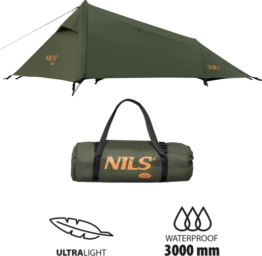De ultralichte tweepersoonstent NILS Camp Skyair 2 is ideaal voor fietstochten, kanoreizen en bergwandelen. Hij biedt een minimaal gewicht van 2,4 kg, compacte afmetingen na het inpakken en betrouwbare bescherming tegen regen en wind. Dankzij het buitenzeil met een waterkolom van 3000 mm, de grondzeilwaarde van 5000 mm en het no-see-um muskietengaas garandeert hij een comfortabele en rustige slaap in de natuur.
