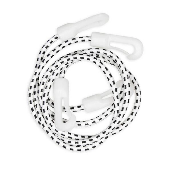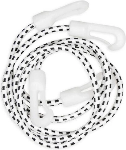 In de set vind je 2 elastische koorden met haken voor snelle bevestiging tussen plafond en vloer in ruimtes van 180–300 cm hoog.