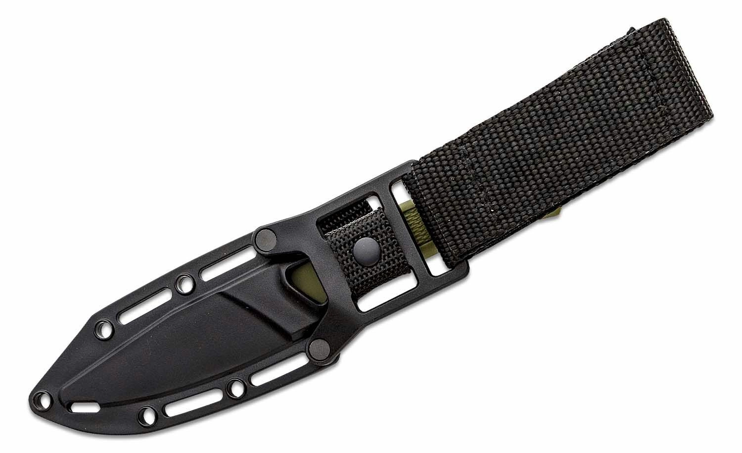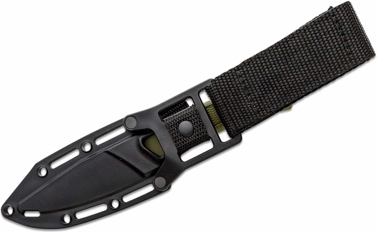 Het getextureerde handvat van polypropyleen met rubbercoating ligt uitstekend in de hand, ook wanneer het nat is. Inclusief een duurzame GFN-schede met nylon lus voor veilig dragen aan de riem.