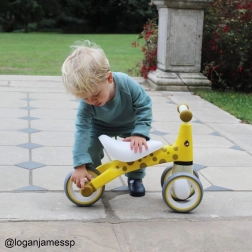 Vier brede wieltjes zorgen voor uitstekende stabiliteit en soepel rijgedrag, ideaal voor de eerste stapjes op de loopfiets.