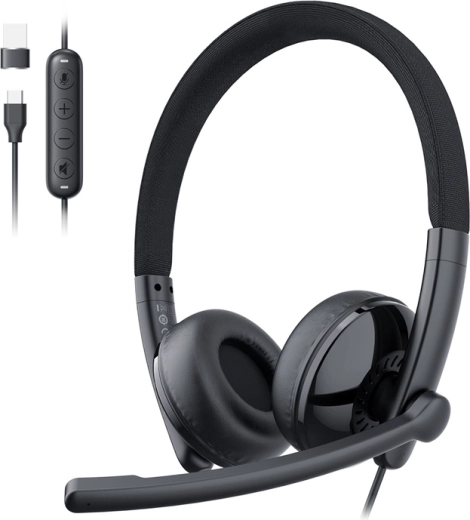 De lichte EMEET GeniusCall HS50 headset voor dagelijkse gesprekken en werken op afstand biedt HD-geluid, een ruisonderdrukkende microfoon (ENC) en plug-and-play-aansluiting via USB-A/USB-C. Dankzij de geheugenschuim-oorkussens, de verstelbare hoofdband en een gewicht van slechts 126 g is hij comfortabel, ook bij urenlang gebruik. Compatibel met Windows, macOS, Android en iOS, evenals met Teams, Zoom, Google Meet, Slack en Cisco Webex.