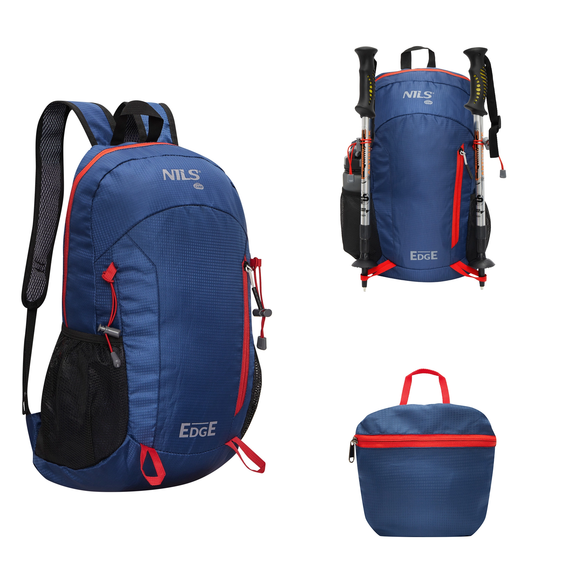 Lichte wandelrugzak NILS EDGE met een inhoud van 22 l, ideaal voor dagtochten, wandelingen, fietsen en hardlopen. Biedt een duurzaam waterafstotend materiaal, een doordachte indeling van vakken, mesh zijvakken voor een fles en de mogelijkheid om wandelstokken te bevestigen. Is eenvoudig op te vouwen in de geïntegreerde etui en weegt slechts 210 g.