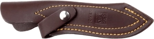 Compact jachtmes JOKER CORZO met een lemmet van 10 cm, ideaal voor bushcraft en outdoor. Biedt een robuuste full-tang constructie, roestvrij staal 1.4116 voor betrouwbare snedes, een ergonomisch handvat van olijfhout en een hoogwaardig lederen foedraal voor veilig dragen.