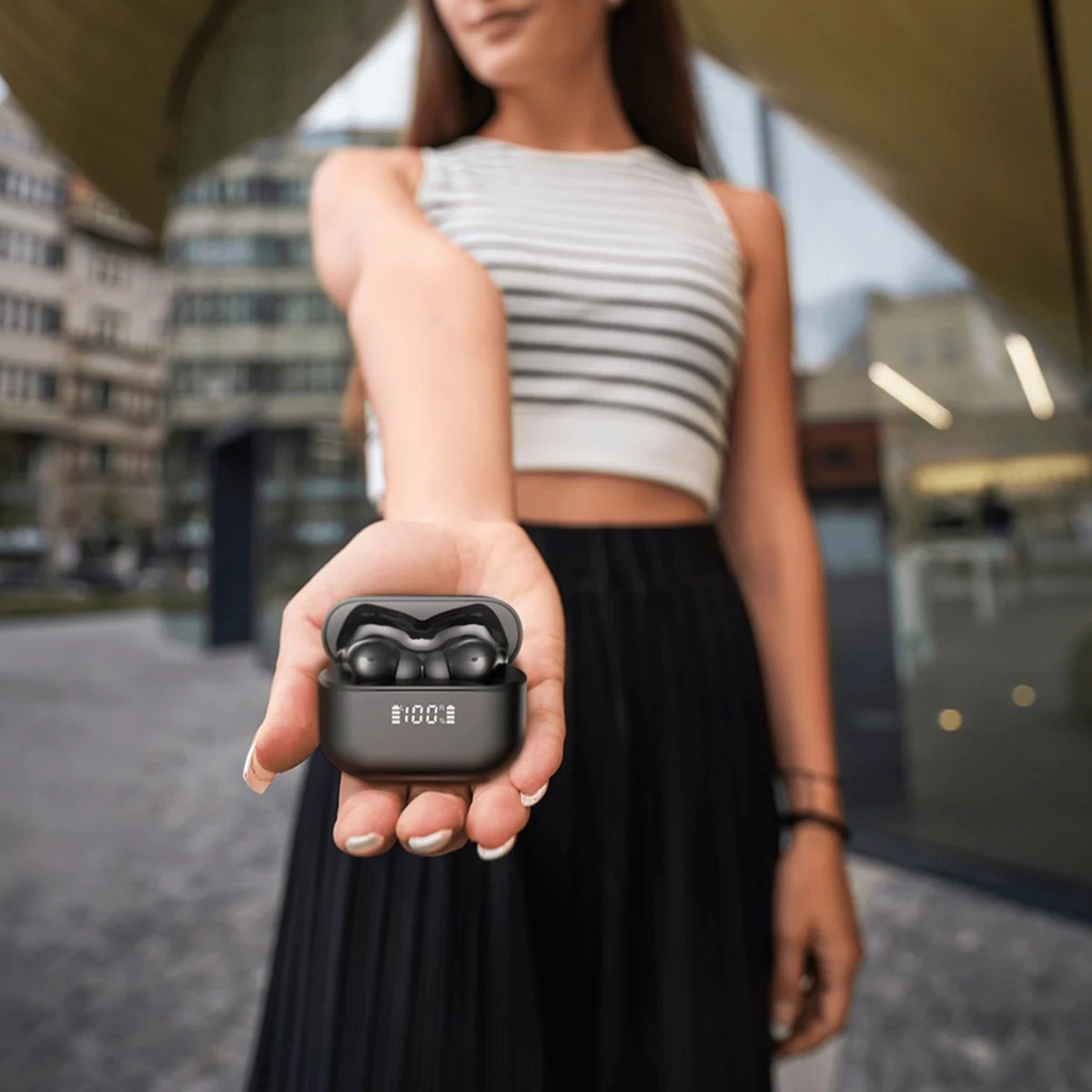 Met de Audeeo-app past u eenvoudig de equalizer en de bediening van touchgebaren aan naar uw voorkeur. De praktische oplaadcase met LED-display toont continu de batterijstatus, zodat u inzicht hebt in de energie van zowel de oordopjes als de case.