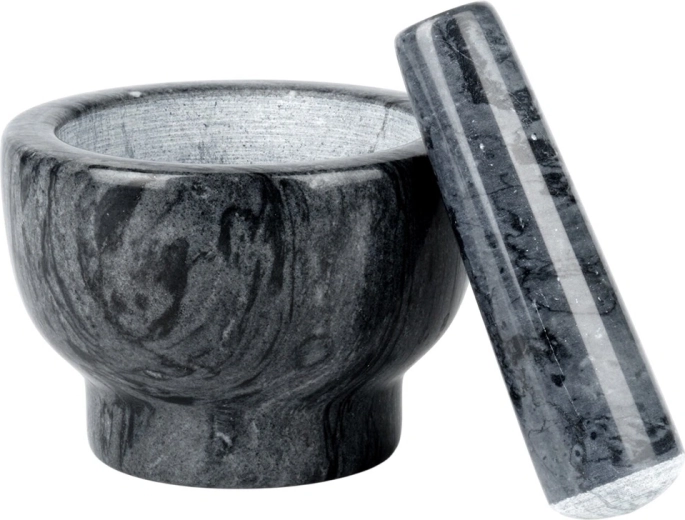 Duurzame granieten vijzel met stamper voor het eenvoudig pletten en malen van kruiden, specerijen en zaden. Natuursteen zorgt voor stabiliteit, een lange levensduur en uitstekende resultaten. Ongepolijste binnenkant van de kom en onderzijde van de stamper voor effectief pletten, zelfs van hardere ingrediënten. Eenvoudig te onderhouden en tijdloos design voor elke keuken.