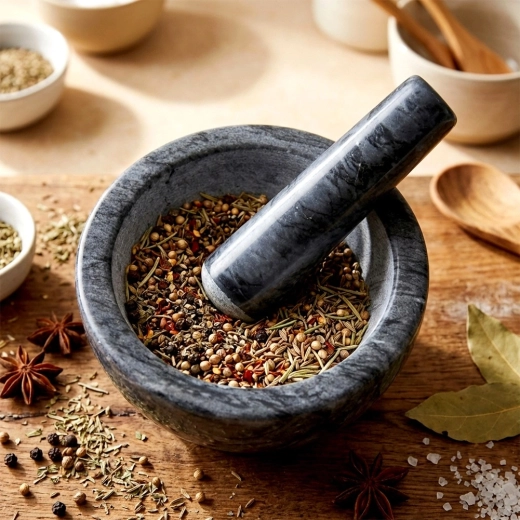 - Betere smaak en geur: mechanisch pletten geeft essentiële oliën intenser vrij dan malen in een molen.