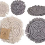 Ontdek stijlvolle macramé-onderzetters die functionaliteit en esthetiek combineren. Dankzij het stevige, geweven ontwerp van katoen met polyester beschermen ze oppervlakken betrouwbaar tegen kringen van mokken, krassen en hitte, en dienen ze tegelijk als smaakvolle decoratie.