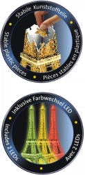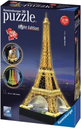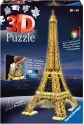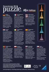 Puzzel van de Eiffeltoren in nachteditie biedt prachtige LED lichteffecten in drie kleuren. Na voltooiing zullen de puzzels schijnen met aangenaam wit, blauw of rood licht.