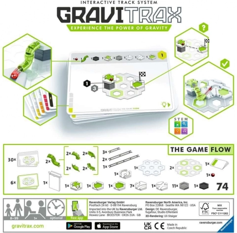 GRAVITRAX The Game Flow neemt je mee in de wereld van zwaartekracht en slim bouwen. Ontwerp en combineer verschillende baanlayouts, probeer nieuwe elementen uit en zie hoe de knikkers over onverwachte en leuke routes rollen. Elke opstelling stimuleert logisch denken, creativiteit en probleemoplossing.