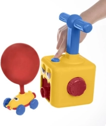 Pomp de ballon op, druk op de knop en zie hoe het autootje vooruit schiet. Kinderen begrijpen zo duidelijk het principe van luchtdruk en reactie bij elke start.