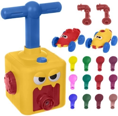Ontdek de magie van luchtaandrijving zonder batterijen. Plaats eenvoudig een onopgeblazen ballon op het autootje, sluit hem aan op de pomp, pomp een paar keer en laat hem met één druk op de knop los – het autootje zoeft over de vloer en kinderen zien met eigen ogen de kracht van druk en reactie.