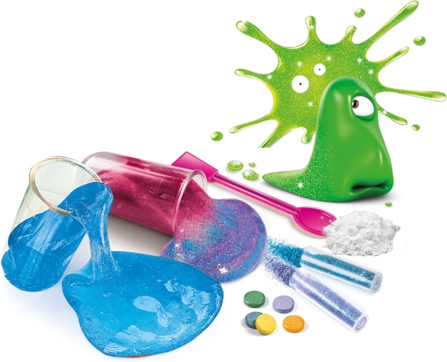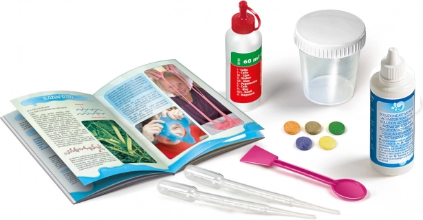 De set bevat diverse materialen die het experimenteren leuker maken. Van prachtige glitterige slijm tot leuke reageerbuisjes.