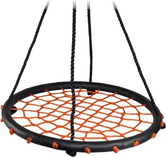Ronde schommel met touwvlecht, geschikt voor gebruik binnen en buiten. Belangrijkste kenmerken: diameter van de schommel 60 cm, draagvermogen 100 kg, geschikt voor binnen- en buitengebruik