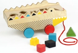 Deze houten trek-alligator met vormenstoof is het ideale speelgoed voor kleine ontdekkers vanaf 18 maanden. Vijf robuuste vormen kunnen eenvoudig in de bijpassende openingen worden geplaatst, wat de oog-handcoördinatie en het logisch denken stimuleert. Dankzij het praktische trekkoord en de rubberen wieltjes beleven kinderen veel actieve speelpret, thuis en onderweg.