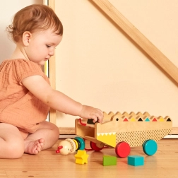 Het speelgoed is gemaakt van hoogwaardig, duurzaam hout uit verantwoorde bronnen (FSC) en gelakt met veilige, niet-giftige verf op waterbasis. De stille loop van de wielen is lief voor de vloeren en de oren van ouders, en het tijdloze design zorgt ervoor dat de alligator jarenlang een favoriete speelkameraad blijft.