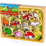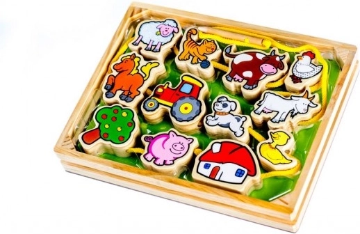 Dit houten inrijgspel is een ideale hulp voor de allerkleinsten. Kinderen leren ermee traditionele Tsjechische dieren en hun jongen kennen. Speelse activiteiten rond het rijgen stimuleren het vertellen van verhalen en leren kinderen niet alleen geduld, maar ook het herkennen van kleuren.