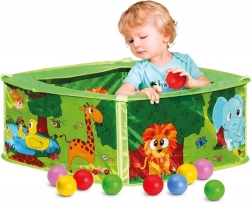 Geweldig zwembad voor kinderen voor elke kamer! Een klein speelterrein vol met kleurrijke ballen die urenlang plezier biedt. Het ondersteunt de sensomotorische ontwikkeling van het kind en is zeer gemakkelijk op te bergen.