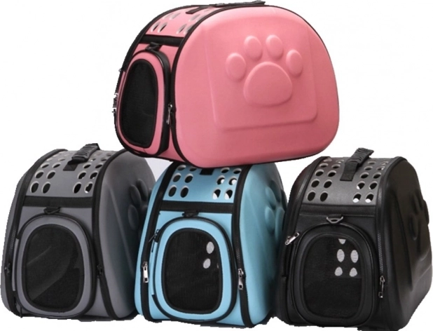 Lichte en duurzame draagtas van EVA-schuim voor kleine honden, katten en andere huisdieren tot 6 kg. Biedt stevige bescherming, uitstekende ventilatie, gemakkelijke toegang met ritssluiting en comfortabel dragen dankzij de afneembare schouderriem en ergonomisch handvat. De opvouwbare constructie bespaart ruimte bij het opbergen.