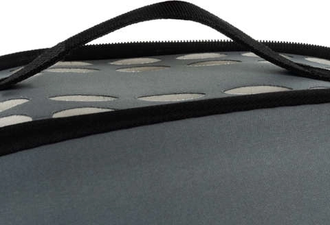 Doordachte ventilatie met meerdere openingen, inclusief de bovenzijde, zorgt voor constante luchtcirculatie. Voor- en zijritsen bieden gemakkelijke instap en eenvoudig onderhoud van de binnenkant. De verstelbare schouderriem (afneembaar) en het stevige handvat garanderen comfortabel en veilig dragen.
