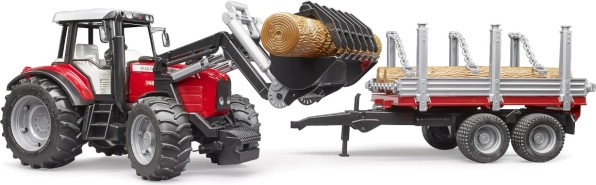 BRUDER tractor MASSEY FERGUSON 7480 met voorlader en houttransporter