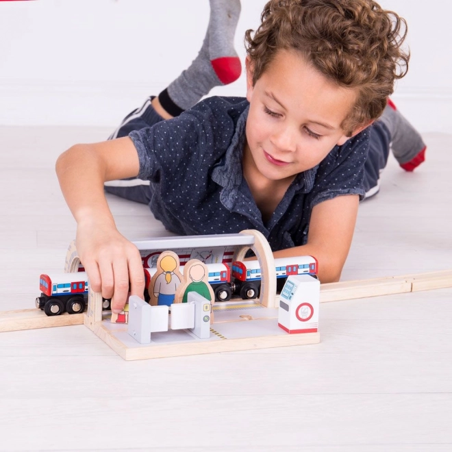 Stap in de bruisende wereld van de metro! Het houten metrostation van Bigjigs Rail brengt kinderen de iconische sfeer van de Londense underground – van het kopen van een kaartje tot het passeren van het poortje naar het perron. De zorgvuldige afwerking van hout en doordachte accessoires stimuleren creatief rollenspel en ontwikkelen fijne motoriek en coördinatie.
