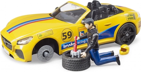 De gele sportwagen met nummer 59 en afneembaar dak biedt zowel een race-look als functionele details. Ideaal voor service- en racescenario’s.