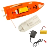 Deze kleine maar vlotte RC-boot biedt intuïtieve bediening en stabiele vaart op een kalm wateroppervlak. Dankzij de duurzame kunststof romp en doordachte aerodynamica is het model uitstekend te besturen en geschikt voor kinderen. De voeding wordt verzorgd door een Ni-Cd accu 3,6 V 500 mAh, goed voor ongeveer 7–8 minuten vaart per lading.