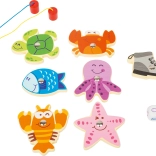 Een leuk en educatief spel voor kinderen in de vorm van magnetisch vissen, gemaakt van 100% FSC-gecertificeerd hout. Ontdek het plezier van het vangen van kleurrijke zeedieren en ontwikkel de fijne motoriek van je kinderen.