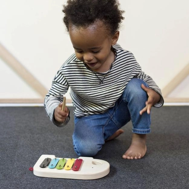 Spelen op de xylofoon bevordert oog-handcoördinatie, fijne motoriek en het luistervermogen. De ideale muzikale speelgoedkeuze voor een eerste kennismaking met ritme, voor kinderen vanaf 18 maanden.