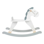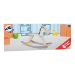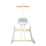 Klassiek hobbelpaard in moderne Scandinavische stijl, combineert wit en grijs, met een comfortabel zitje met rugleuning en een stevige houten constructie. Ideaal voor kinderen vanaf 2 jaar, ondersteunt de ontwikkeling van balans, coördinatie en zorgt voor langdurig speelplezier in elke kinderkamer.