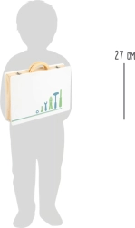 De betrouwbare metalen sluiting en het handvat dat is afgestemd op kinderhanden maken dragen eenvoudig. De set is gemaakt van een combinatie van multiplex en massief hout en biedt daardoor een lange levensduur en veel doordachte details. Kinderen kunnen kiezen uit verschillende designs: de werkplaatsstijl Miniwob en de Scandinavische Nordic.