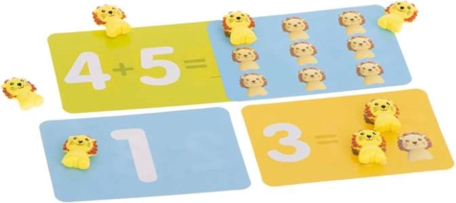 Elk leeuwtje staat gelijk aan de waarde 1 – zo begrijpen kinderen gemakkelijk dat bijvoorbeeld 4 in evenwicht is met 4 leeuwtjes. Perfect voor intuïtief optellen en aftrekken.