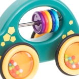 De kralen in de wieltjes maken bij elke beweging van het speelgoed een aangenaam rammelend geluid, stimuleren het gehoor en moedigen kinderen aan om te bewegen.