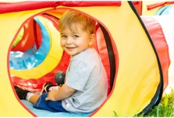 Ontdek onze prachtige kinderspeeltent die kleine ontdekkers onvergetelijke avonturen en creatieve plezier biedt. De tent bevat een tipi, tunnel en huisje, wat veel mogelijkheden biedt voor spel en ontwikkeling van de vaardigheden van uw kinderen. Hij kan eenvoudig in een paar seconden worden opgezet dankzij de ingebouwde flexibele draden in de constructie.