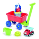 Lichte maar stabiele kar met lange handgreep en brede wielen maakt het kinderen gemakkelijk om gereedschap en zand te vervoeren tussen de zandbak en de 'bouwplaats'. Geweldige hulp voor het opbergen en dragen van de hele set.