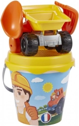 Deze speelse zandset met bouwthema is perfect voor de ontwikkeling van fantasie, fijne motoriek en samenspel. Kinderen genieten van het vervoeren van zand met het vrachtautootje, zeven door de zeef en het bouwen van zandtaartjes en forten.
