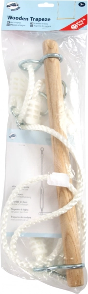 Deze veelzijdige houten rekstok met schommel is een uitstekende keuze voor actieve kinderen. De robuuste uitvoering van hout en metaal, het eenvoudige ophangsysteem en de soepele lengteverstelling van het touw maken de Trapeze tot een praktische en veilige optie voor thuisoefeningen en de speelzone.