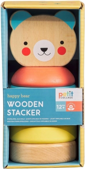 De Houten Toren Beer van het merk Petit Collage is een kleurrijke en veilige stapelpuzzel voor kinderen vanaf 12 maanden. Dankzij de kenmerkende patronen en kleuren van het merk rijgen en stapelen kinderen intuïtief de afzonderlijke onderdelen, waarmee ze hun fijne motoriek en oog-handcoördinatie oefenen.