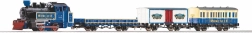 stoomlocomotief (1 st), personenrijtuig (1 st), goederenwagens (2 st), gebogen rails R2 met bedding 55412 (12 st), rechte rail G231 met bedding 55401 (1 st), rechte rail G231 met voedingsaansluiting 55406 (1 st), bedding voor voedingsklem 55447 (1 st), analoge voedingsklem 55270 (1 st), draadloze analoge besturing met voeding (1 st)