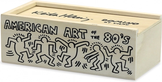 Houten domino VILAC met KEITH HARING-motief. 20 steentjes in houten doosje, hoogwaardige afwerking, ideaal spel en cadeau voor kinderen vanaf 4 jaar.