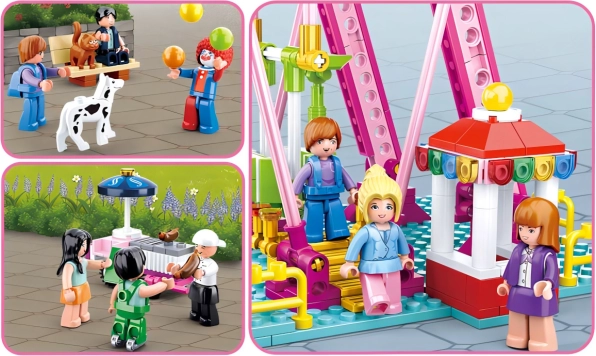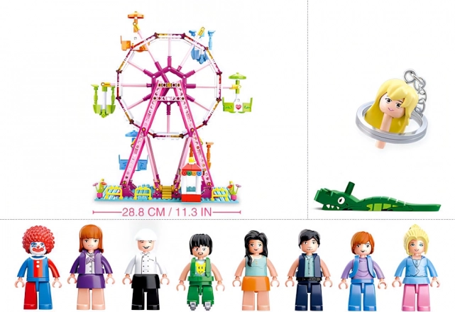 Bouw je eigen magisch pretpark met de Sluban Girls Dream bouwset! Het grote roze-blauwe reuzenrad met draaifunctie, 789 onderdelen en 8 minifiguren biedt urenlang creatief speelplezier. De set is gemaakt van duurzaam ABS-plastic, is compatibel met LEGO, Cobi en Mega Bloks en bevat bovendien een sleutelhanger als cadeautje.
