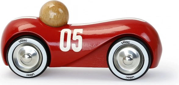 Stijlvolle houten raceauto Vilac Streamline in rood. Hoogwaardig gelakt hout, metalen wielen met rubberlaag, geschikt vanaf 2 jaar. Gemaakt in Frankrijk.