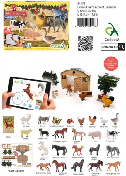 Geniet van het wachten op de Kerstman met de adventskalender van CollectA, die 24 boerderijdierfiguren biedt voor elke dag van de advent. De kalender bevat interactieve kaartjes om de dieren tot leven te wekken via de CollectA AR-app.