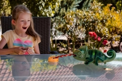 De kameleon kenmerkt zich door een realistisch uiterlijk en een breed scala aan bewegingen, waardoor kinderen plezier kunnen beleven aan realistische ervaringen.