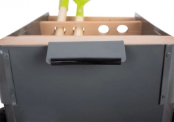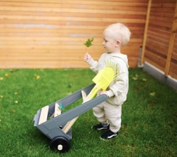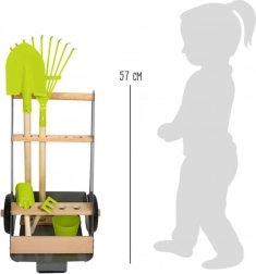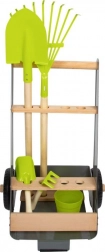 Deze tuinwagen stelt jonge tuiniers in staat om aan hun droomtuin te werken. De stabiele wagen van beukenhout en metaal is gemakkelijk door de tuin te duwen of trekken, dankzij de stevige wielen. Bevat 5 stuks gereedschap voor veilig en leuk tuinieren.