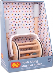 De prachtig ontworpen muzikale rol, gemaakt van 100% FSC® hout, ondersteunt niet alleen de motoriek, maar ook de zintuiglijke vaardigheden van uw kinderen. Door de beweging en het geluid van het belletje dat tussen de houten latten schommelt, ontwikkelt het kind zijn gehoorvaardigheden. Het speelgoed bestaat uit een combinatie van natuurlijk en gekleurd hout, waarbij de kleuren de visuele waarneming stimuleren.