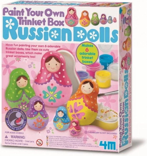 Deze creatieve set zorgt voor plezier voor jong en oud — eerst schilder je de matroesjka’s naar eigen fantasie en daarna kun je ze gebruiken als praktische opbergdoosjes voor sieraden, schatten en kleinigheden. De set is ideaal voor de ontwikkeling van fijne motoriek, creativiteit en kleurgevoel.