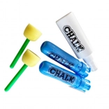 De set bevat 10 krijtjes, 2 houders, lettersjablonen, 2 sponsjes en een waterspuit. Alles wat je nodig hebt voor leuk en creatief tekenen.