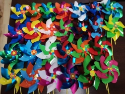 Windmolen in diverse kleurvarianten, verzending gebeurt willekeurig. Grote windmolen (kleurenmix) voor het plezier van kinderen, tovert een glimlach op ieder kindergezicht. Geschikt om thuis mee te spelen en als decoratie in de tuin of in een bloempot. Verbeterde, kwalitatieve constructie voor langdurige functionaliteit. De as is voorzien van een extra buisvormige huls die zorgt voor langdurige draaifunctie. De windmolen is geproduceerd in de EU. De totale lengte met stok is 50 cm. Belangrijkste eigenschappen: totale lengte met stok 50 cm, geschikte decoratie voor thuis en in de tuin.